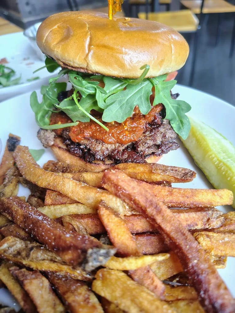 If you haven't been to 1910 Public House in downtown Lilburn yet, Burger Week is the perfect excuse to finally go. This place is modern and cool but does classic Southern food really well. They make their own pimento cheese from scratch — and their Grilled Pimento Cheese sandwich stacks that housemade pimento cheese with fried green tomato and bacon on grilled sourdough. It's the kind of thing that stays on your mind for days. I'm not joking.